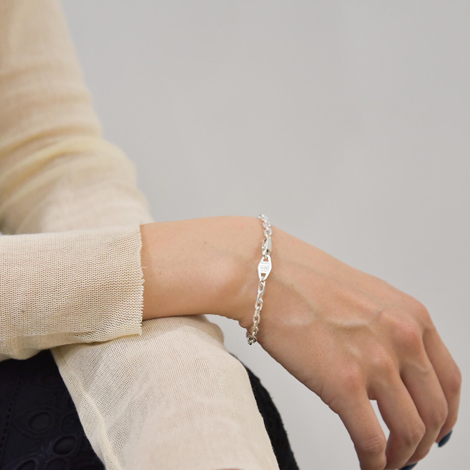 2面をカットした直線的なチェーンはエッジがあることで洗練された印象になり、光の加減で少しキラキラと輝きます。