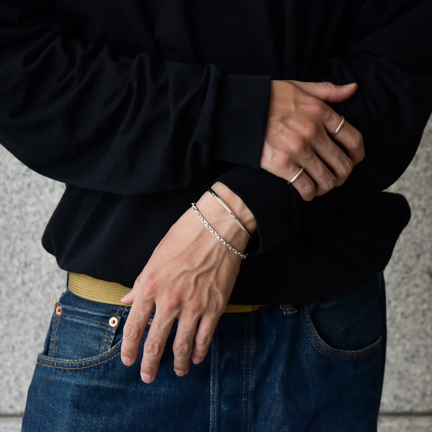 どんなスタイルでも着けれるシルバーは高い輝きとエイジングの二面性を楽しめる、一生物のジュエリーです。